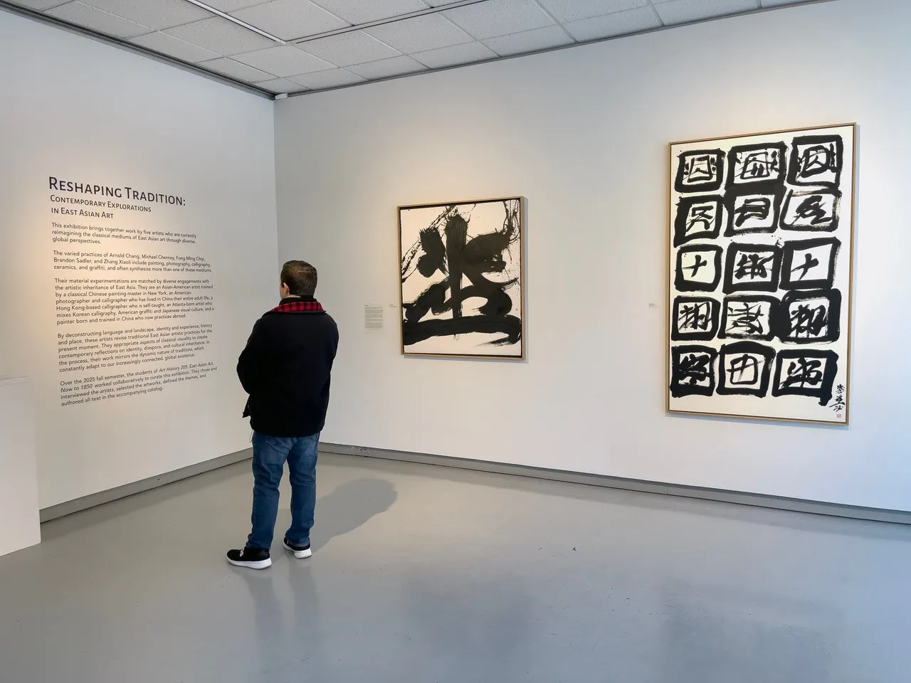《重塑传统》是三一学院威德纳画廊首个完全由学生策划的展览,源于三一学院艺术史副教授Michael J. Hatch:东亚艺术:从当下至1850年课程的实践项目。学生们以策展为实践,全程参与学术研究、作品选择与阐释写作,将理论探索转化为完整的展览呈现。