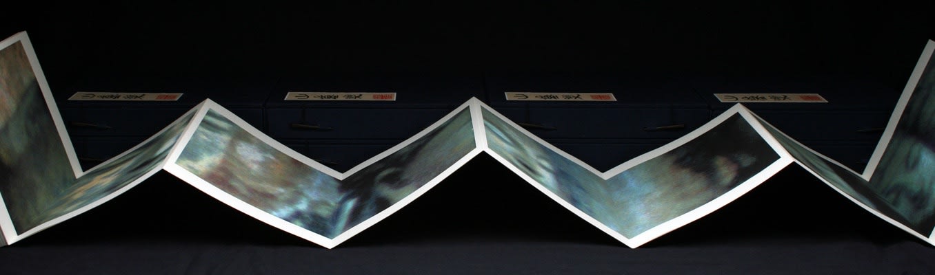 A Bounded By Mountains album_T4 (Mt Hua), 2005Photographic album of twelve leaves; inkjet print on mica-flecked paper. Detail -