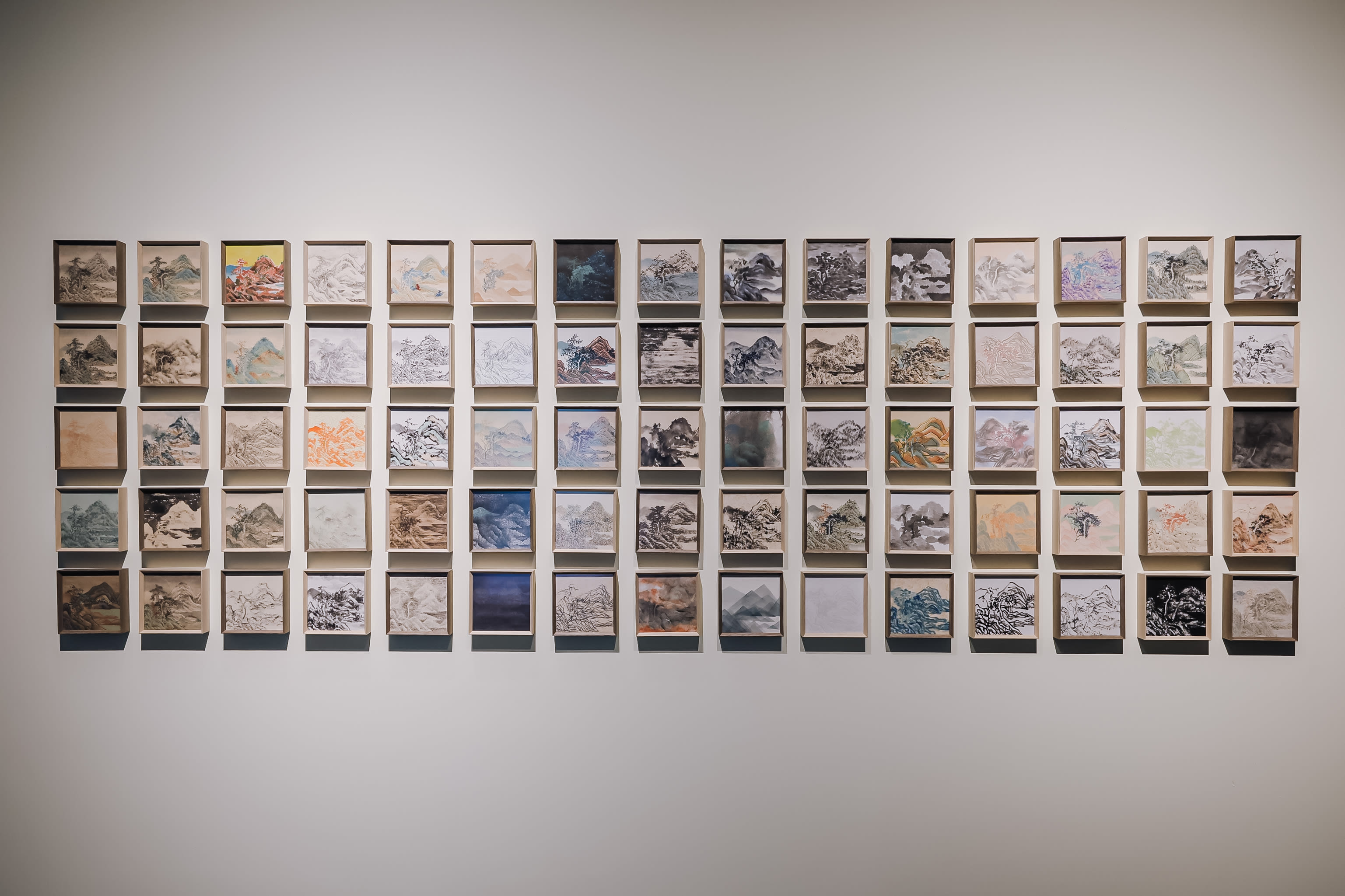 In addition, Yau presents a new series of 75 small landscape blocks, each sharing a similar compositional form but distinguished by different styles of traditional Chinese paintings. Through this body of work, the artist experiments with multiple representations of landscape, offering a dynamic exploration of how tradition can be reinterpreted through repetition and variation.