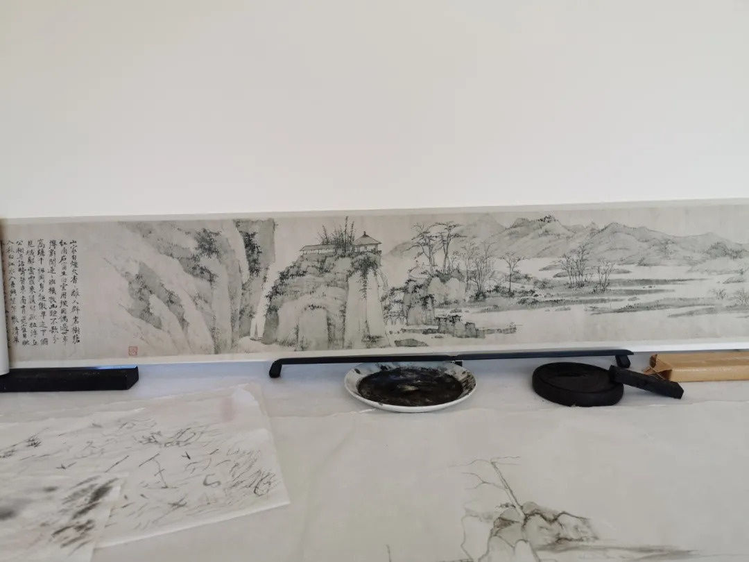 Arnold Chang copying the works of Ming monk Jian Jiang’s work in his studio | 在张洪(Arnold Chang)工作室临摹明四僧渐江作品