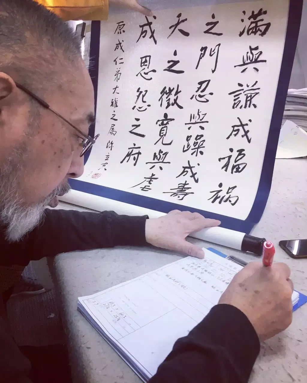 Mr. Zeng Yiyan corrects the information entered on the document (calligraphy, seal identification) of calligraphy works | 曾一琰先生校正书法作品的底卡(书法、章印识别)录入信息