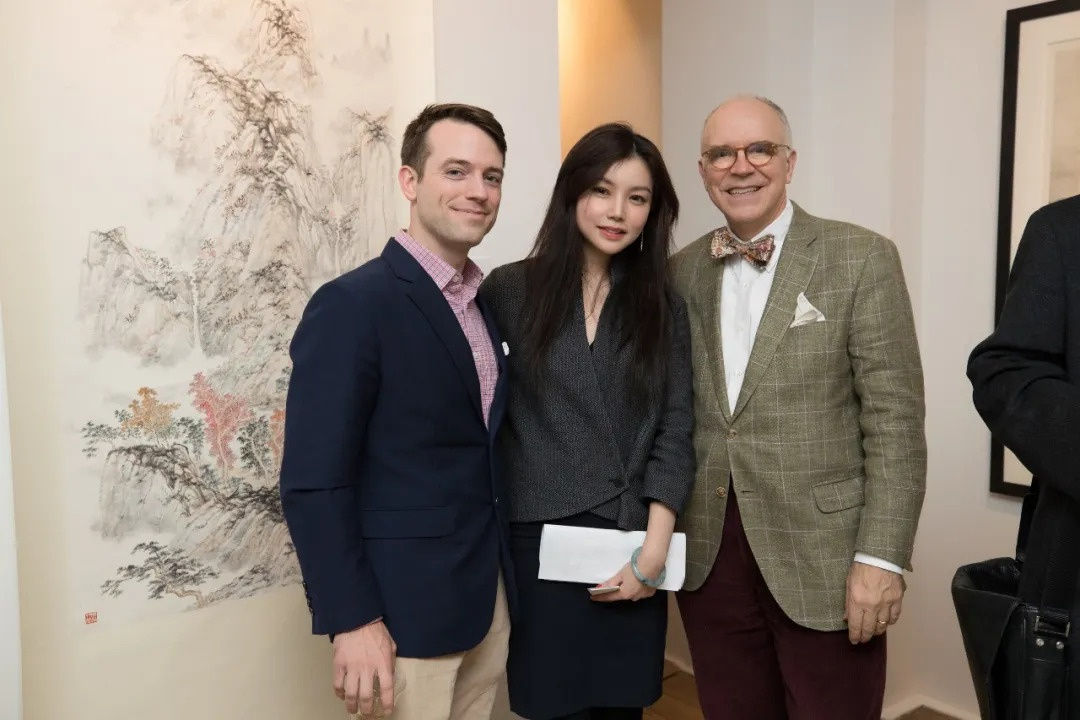 March 2017, Fu Qiumeng Fine Art new York space opening, from left, Lark Mason Jr., Qiu Meng and Chinese antique furniture expert Lark Mason | 2017年3月,65 E 80 st新空间开幕,左起为Lark Mason二世、秋萌及中国古董家具专家Lark MasonArnold Chang teaches ink painting | 张洪(Arnold Chang)教授水墨绘画