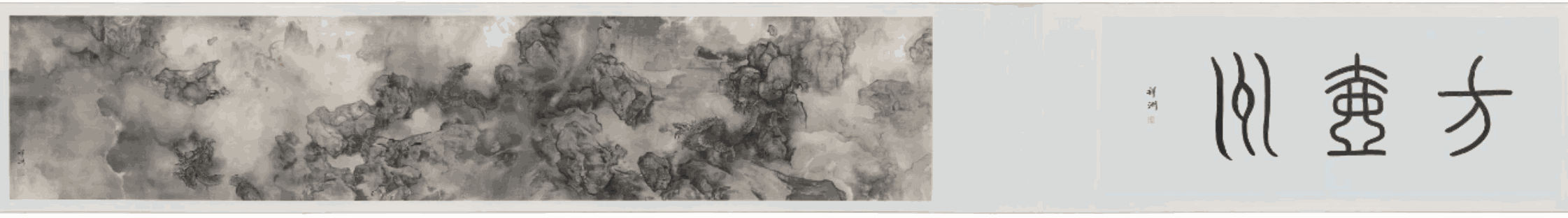 Tai Xiangzhou, Fanghu Isle of the Immortals, 方壶州图, Fanghu zhou, 2021, Ink on silk, mounted as a handscroll, 5 3/8 inches × 6 feet 6 1/8 inches