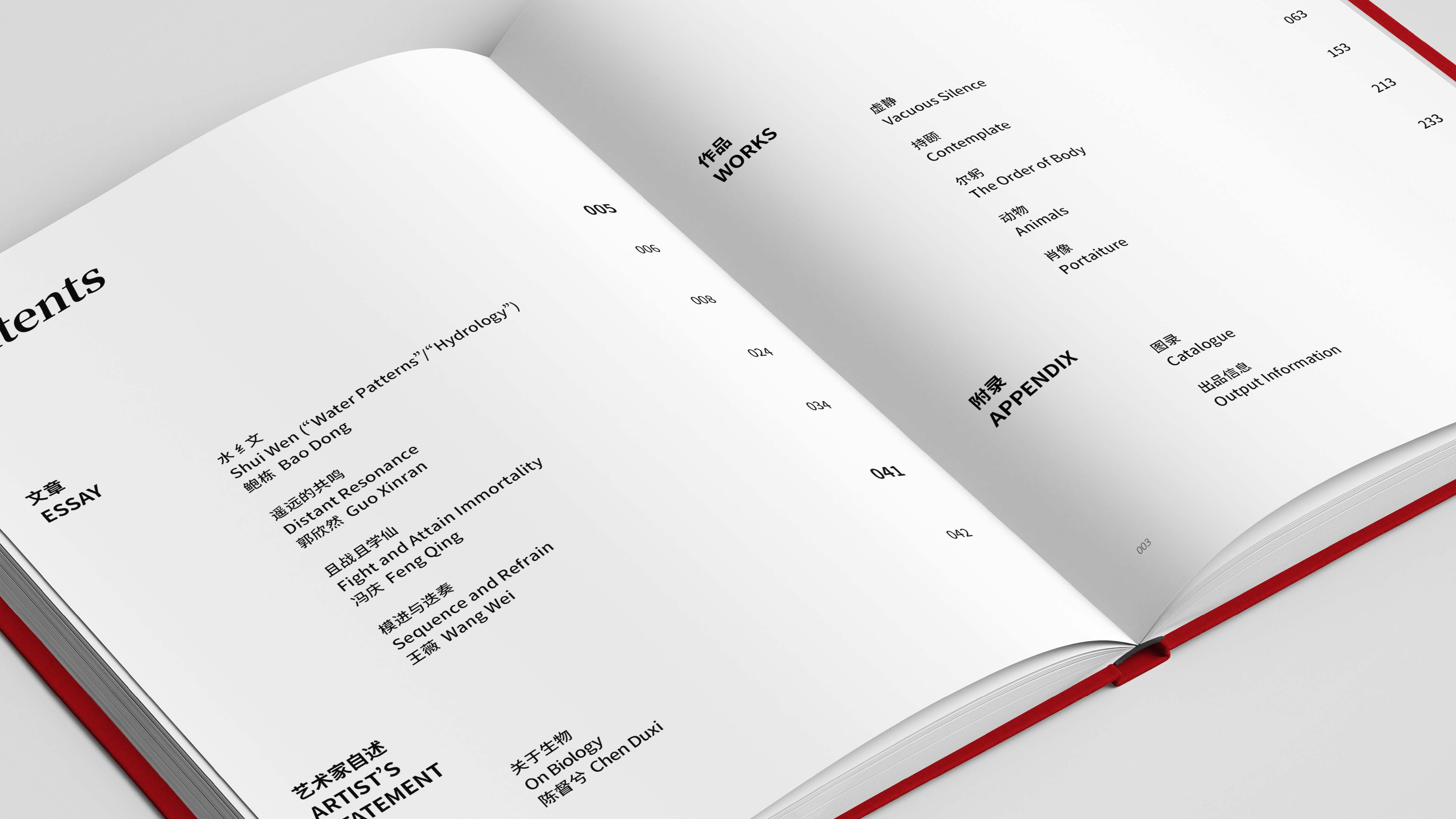 The catalog also includes four scholarly articles and one self-narrative by the artist. Bao Dong's Shui Wen (“Water Patterns”/ “Hydrology”) focuses on how Chen Duxi unifies his paintings with objects using his line-drawing language; Feng Qing's Fight and Attain Immortality refers to Chen Duxi's oeuvre as the "modern copy of the classical mind," with their aesthetic inspiration deeply rooted in the timeless philosophy of the human relationship with nature; Wang Wei's Sequence and Refrain analyzes the abstract and representational elements in Chen Duxi's works, demonstrating how visual references from various cultures and times intertwine and integrate naturally with harmony and consistency in his works.